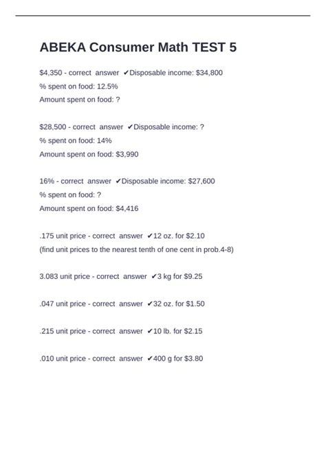 Download abeka consumer math final test Kindle Editon